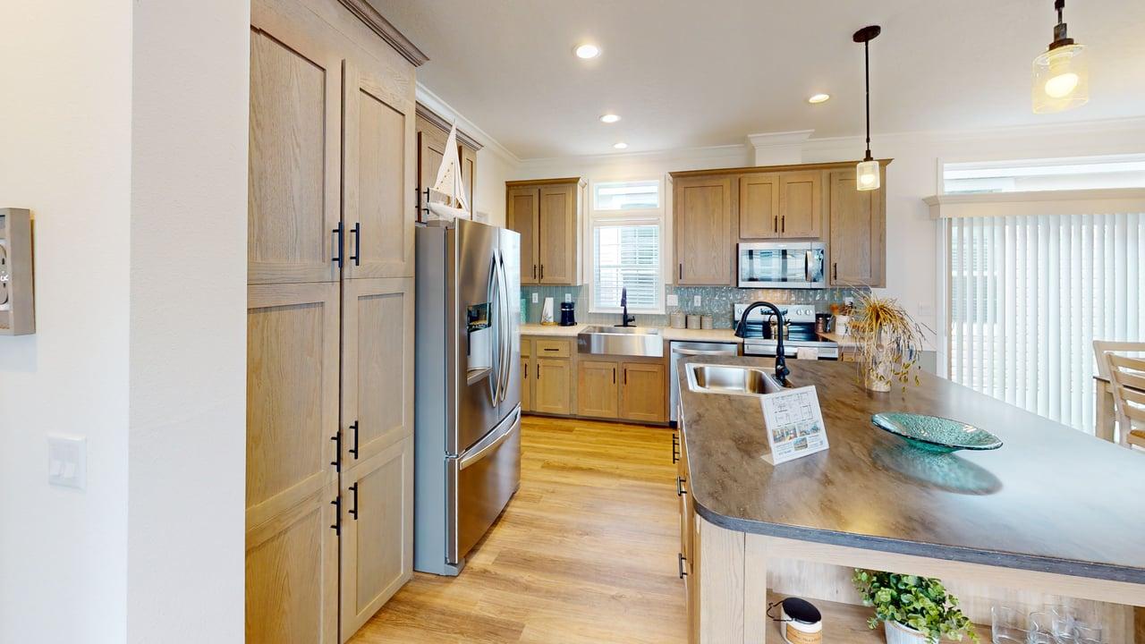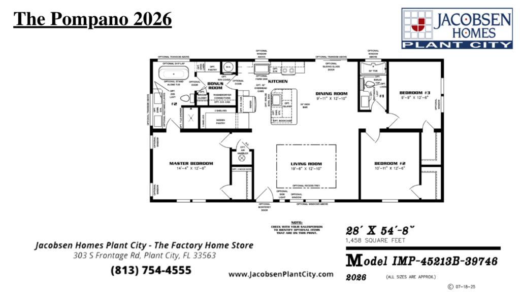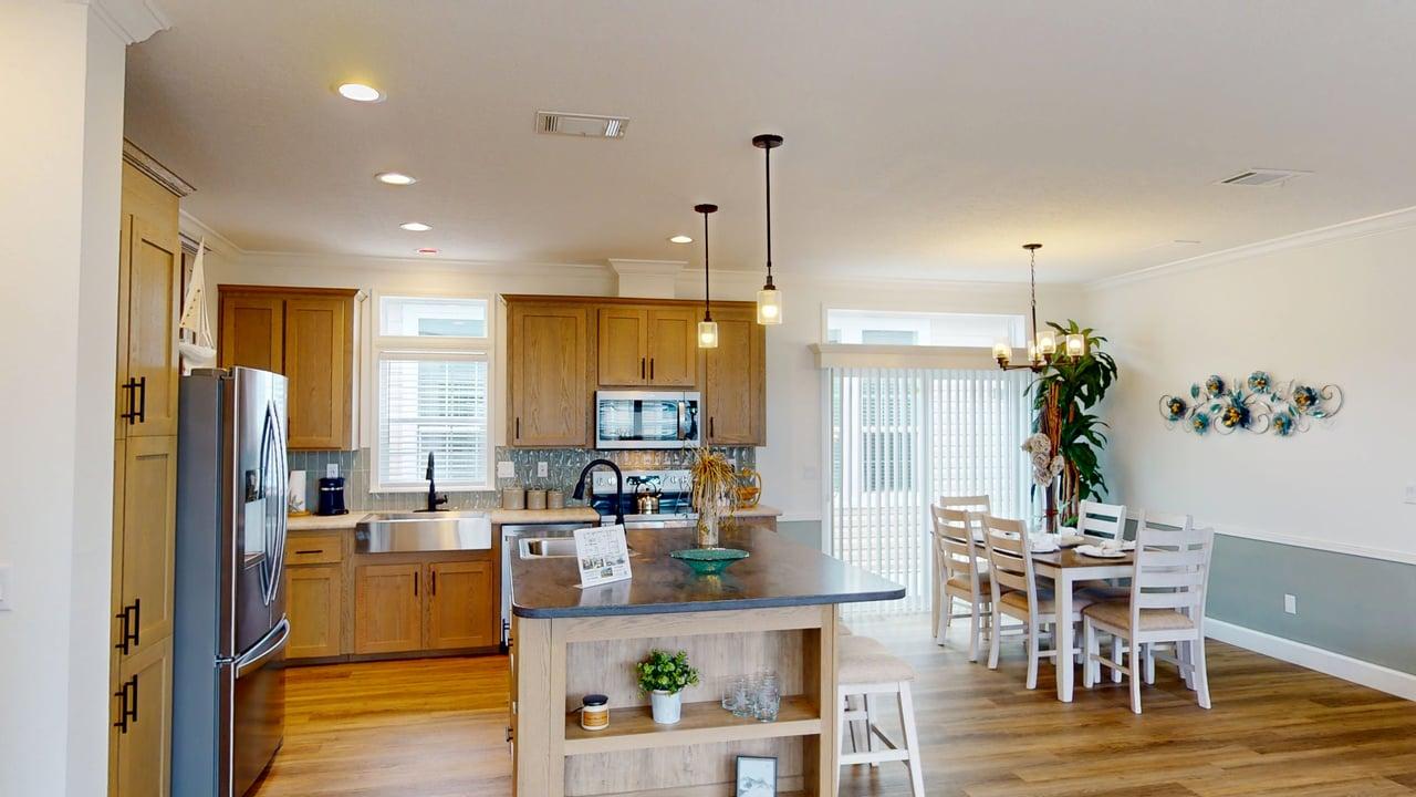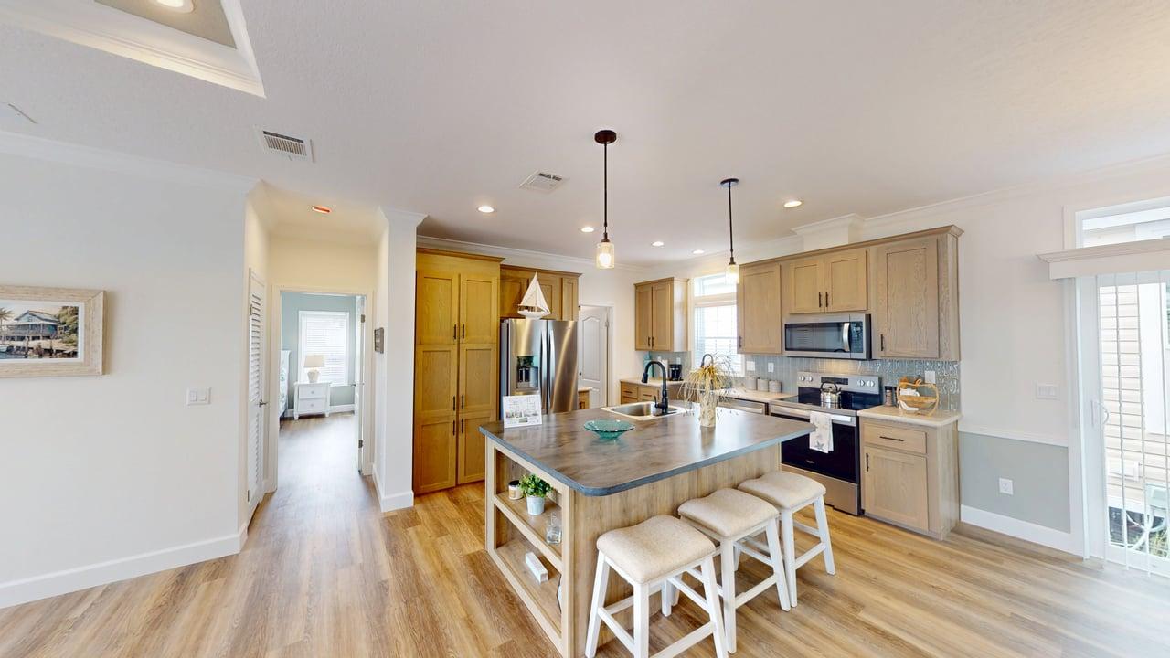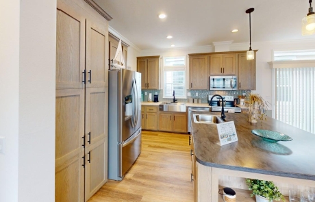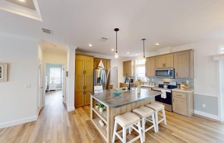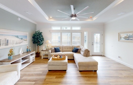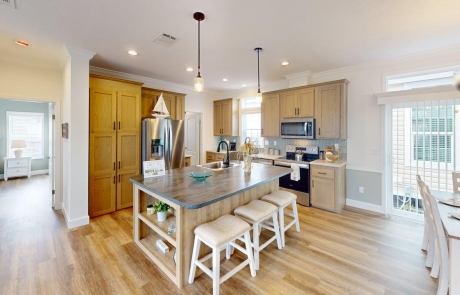 The Pompano 2026 is a great Modular Home for the small family or empty nesters looking for room to accommodate guests. With over 1,400 sq. ft. of living space, this sprawling floorplan is complete with formal dining room, gorgeous great room and third bedroom that can double as a den. This gem includes walk-in closets in each of the three bedrooms, oversized master bathroom and a second, shared guest bathroom. The Pompano 2026 has many upgrades including 9′ Volume Ceilings, Hidden Walk-in Pantry,Vinyl Plank Laminate flooring, Tray Ceiling, Vegetable Sink, Finished Drywall as well as a huge master suite. Call us to today to schedule a tour and see how we can customize this model for you and your family!