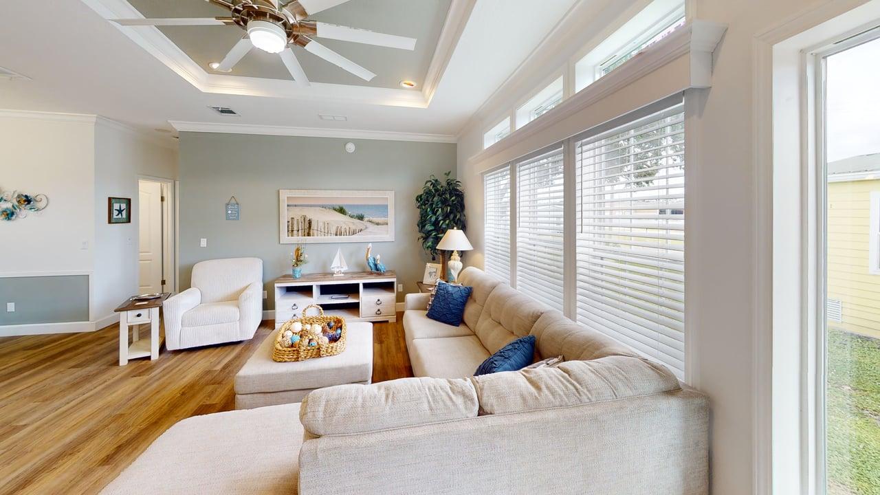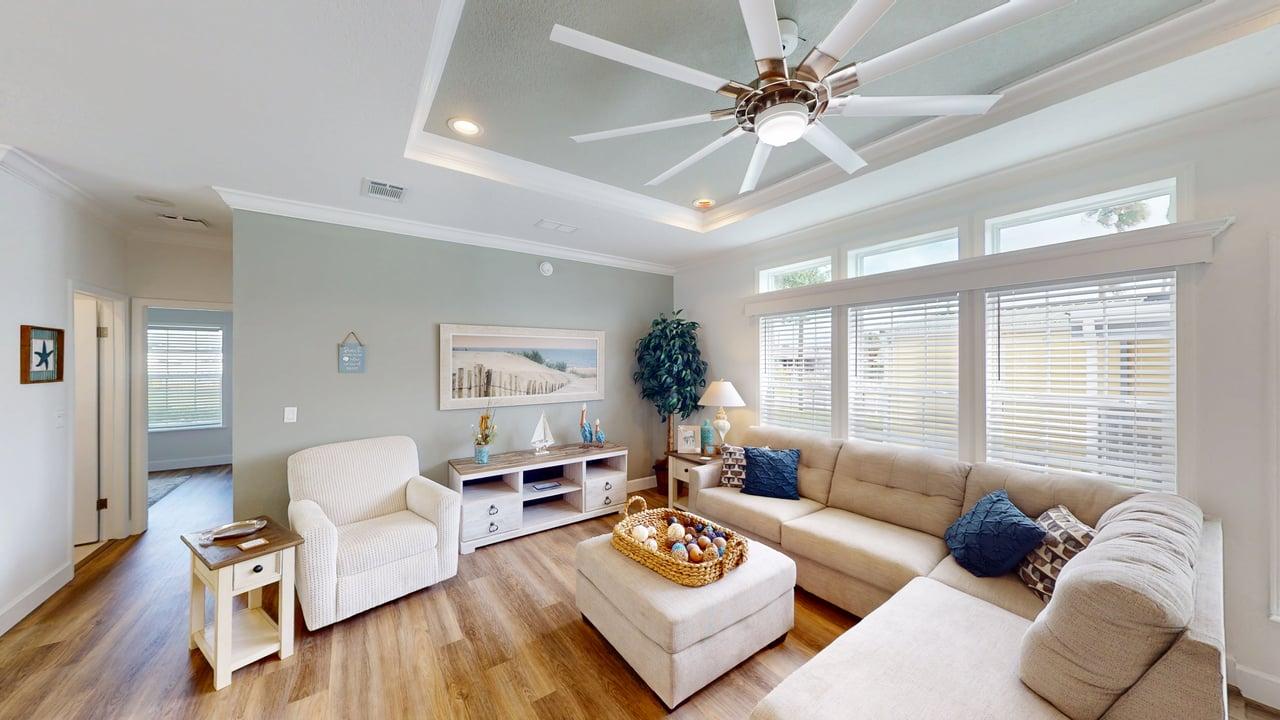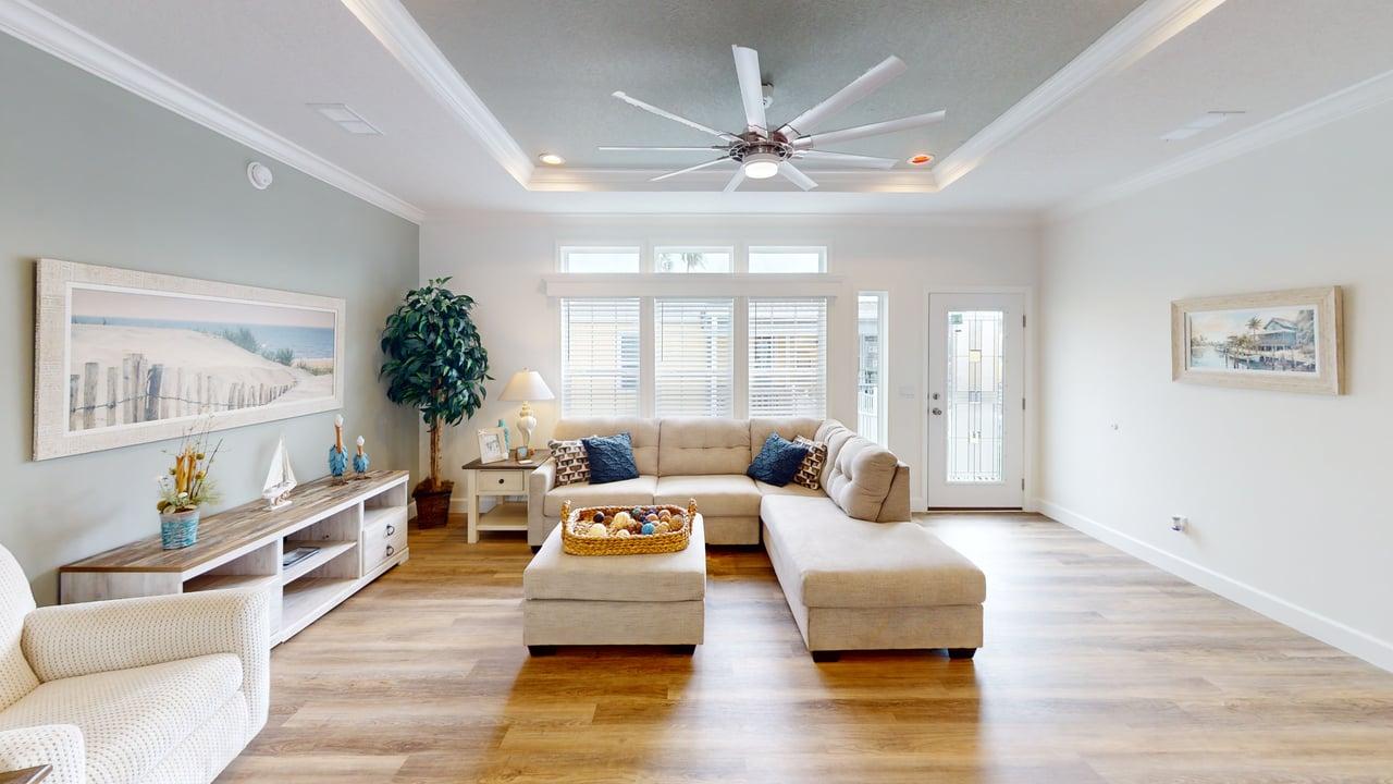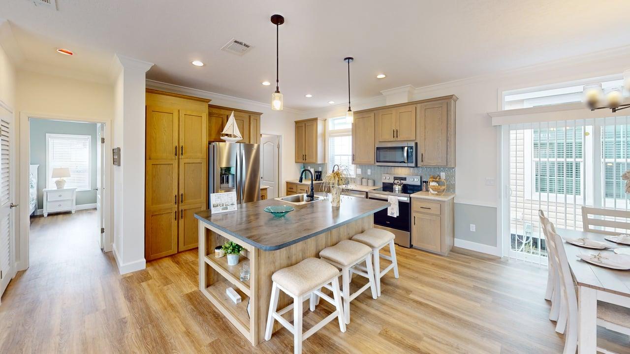 The Pompano 2026 is a great Modular Home for the small family or empty nesters looking for room to accommodate guests. With over 1,400 sq. ft. of living space, this sprawling floorplan is complete with formal dining room, gorgeous great room and third bedroom that can double as a den. This gem includes walk-in closets in each of the three bedrooms, oversized master bathroom and a second, shared guest bathroom. The Pompano 2026 has many upgrades including 9′ Volume Ceilings, Hidden Walk-in Pantry,Vinyl Plank Laminate flooring, Tray Ceiling, Vegetable Sink, Finished Drywall as well as a huge master suite. Call us to today to schedule a tour and see how we can customize this model for you and your family!